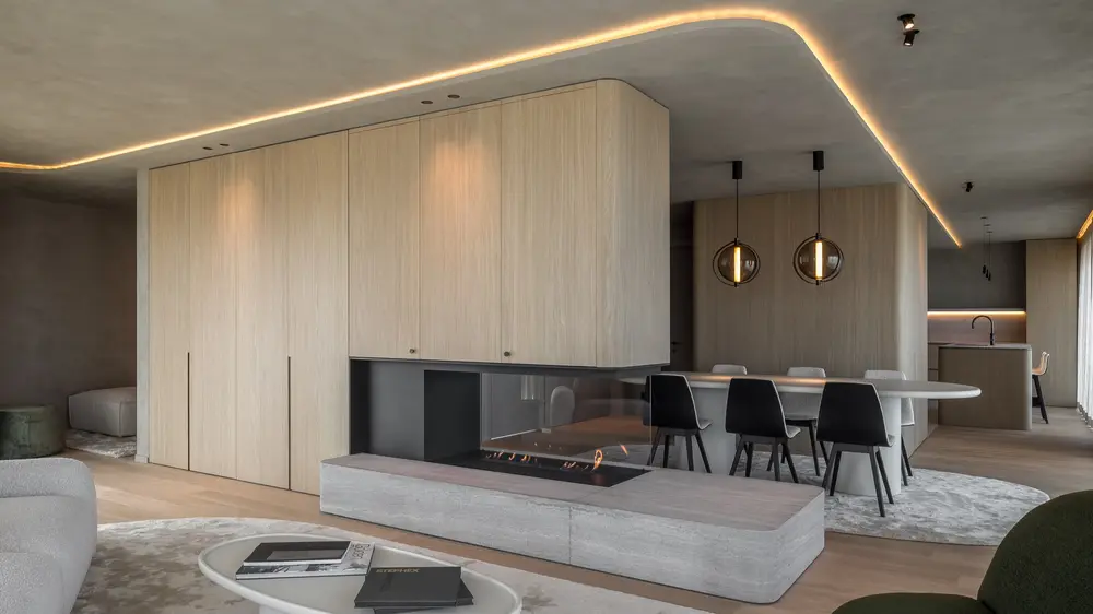 Dans le luxueux Heldentoren à Knokke, Hintex a imaginé et créé un intérieur où sophistication, tranquillité et nature cohabitent à la perfection.