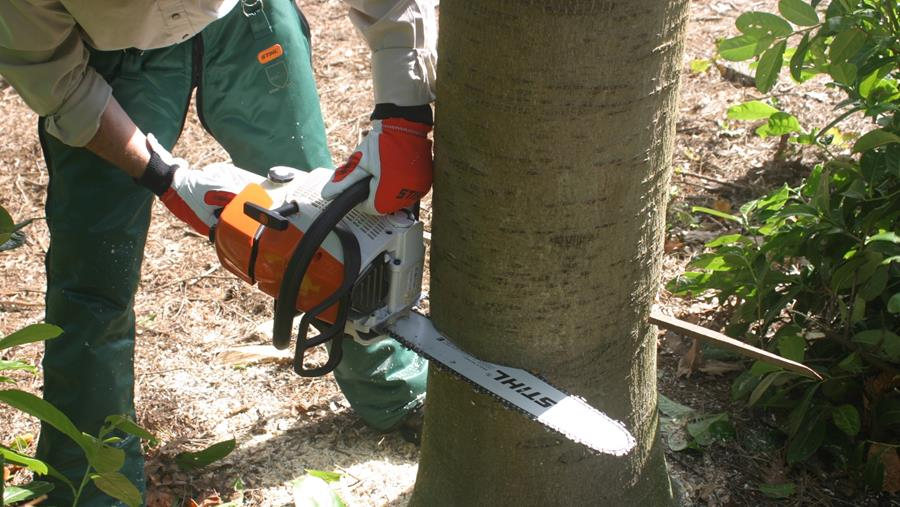 - Utilisez uniquement une tronçonneuse en bon état, avec une chaîne bien affûtée et tendue correctement, ainsi qu’un guide bien droit.