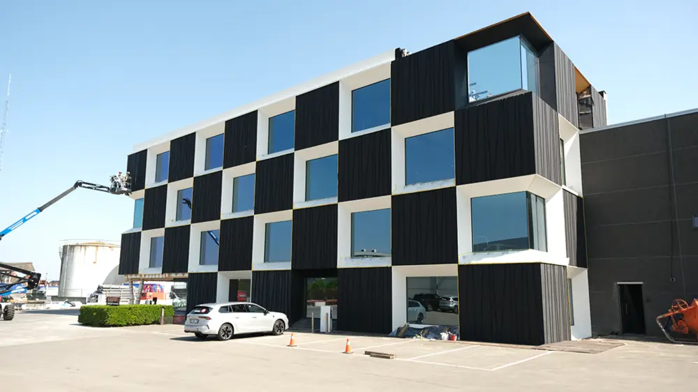 De nieuwe hoofdzetel van Aluvision is een transparant baken van innovatie en vakmanschap, in een structuur van vijf verdiepingen. Lootens stond in voor het uitzonderlijke buitenschrijnwerk, dat esthetische finesse koppelt aan technische complexiteit.