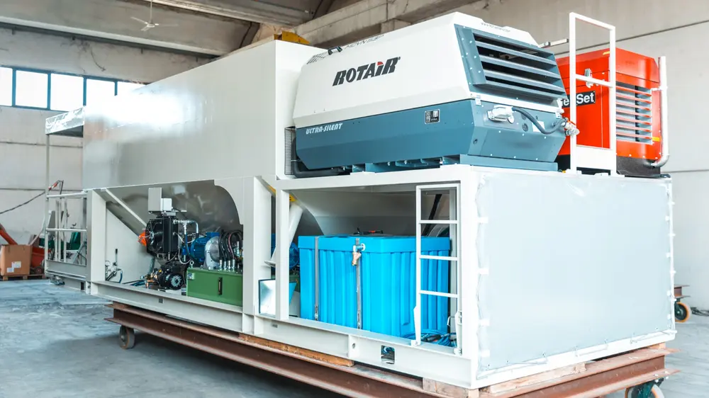 Voor een van zijn laatste ontwikkelingen had K.G. Bontira een motoraangedreven compressor nodig met een schroefeenheid die lucht kon leveren met een snelheid van 5.000 l/min om hoge druk in de mengtank te creëren.